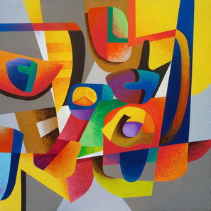 In “RHUMBA”, Cid sets a network of geometric shapes into motion, dance-like in some works, but all in a precise balance and harmony between form and color, and deployed in strategic placement. The result is a vibrant and vibrating pictorial space that delights the eye and uplifts mood and spirit.